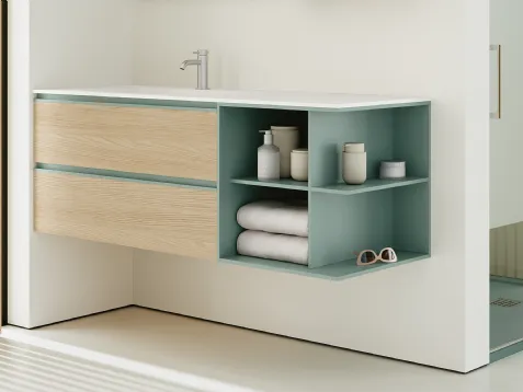 Meubles de salle de bains suspendus Lido Verde Comodoro de Scavolini Bathrooms : découvrez les meubles de salle de bains modernes en HPL et aménagez la salle de bien-être.