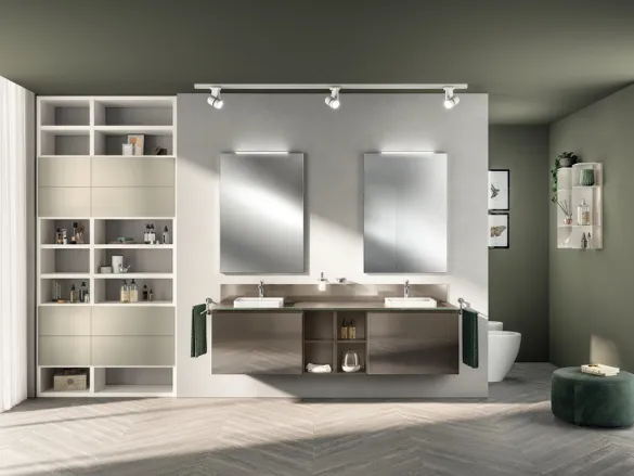 Meubles de salle de bain suspendus Rivo Laccato Lucido Perlato Cuvée de Scavolini Bathrooms : découvrez les meubles de salle de bain en laque brillante moderne et meublez la salle de bien-être.
