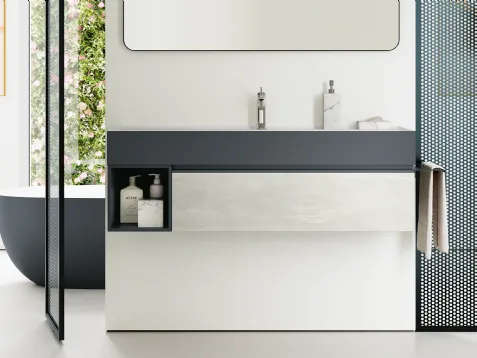 Découvrez les meubles de salle de bains design : des meubles de salle de bains suspendus en laque brillante comme le modèle Aquo Laccato Lucido Panna Porcellana de Scavolini Bathrooms vous attendent.