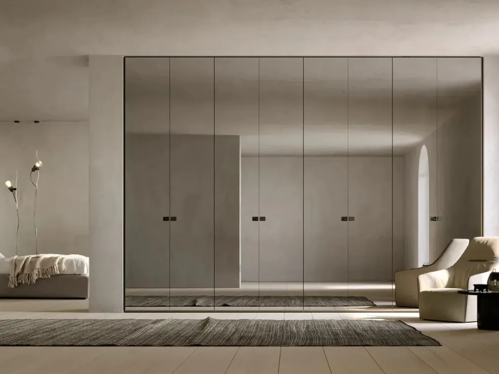 Armoire Atelier avec miroir d'Adok: remplissez le formulaire pour recevoir des informations de tous types et des conseils pour aménager la chambre de vos rêves. Contactez-nous et découvrez notre gamme de mobilier pour la maison: vous pourrez compléter la zone de repos en disposant d'une large variété de meubles de rangement modernes, comme l'armoire en verre sur la photo. Les armoires murales à portes battantes sont des éléments indispensables dans la chambre à coucher, pour la rendre bien aménagée, pratique et complète.