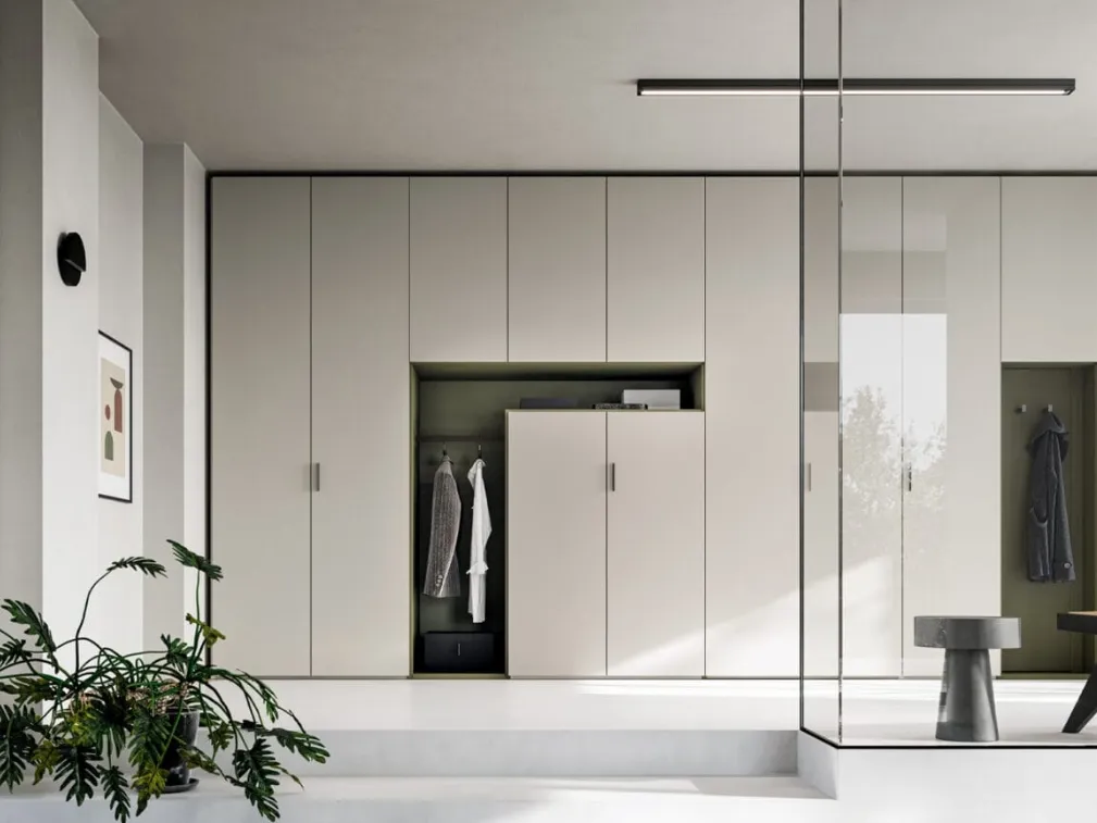 Si vous recherchez des armoires encastrées avec portes battantes, cliquez et découvrez l'armoire Liscia Battente 01 de SantaLucia en mélamin