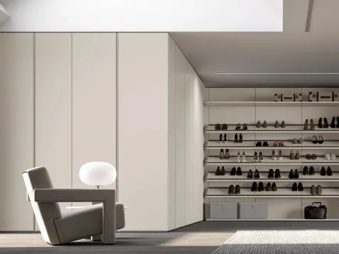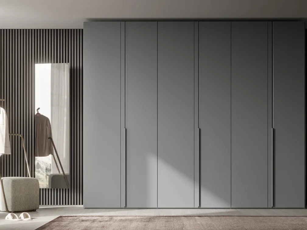 Nous vous présentons l'armoire battante Spira en laqué mat de SantaLucia ! Un catalogue riche d'armoires murales avec des portes battantes.