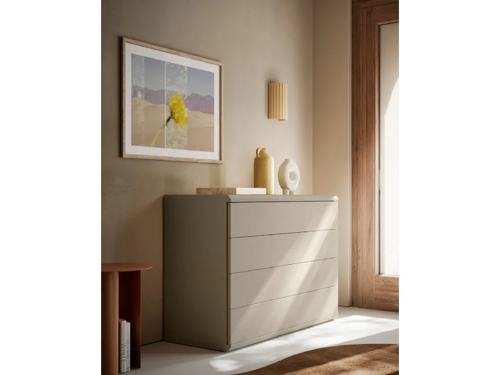Voulez-vous meubler la chambre avec des tables de chevet et des meubles avec tiroirs de chez SantaLucia? Voici le modèle Agata Comò laqué mat pour des espaces modernes.