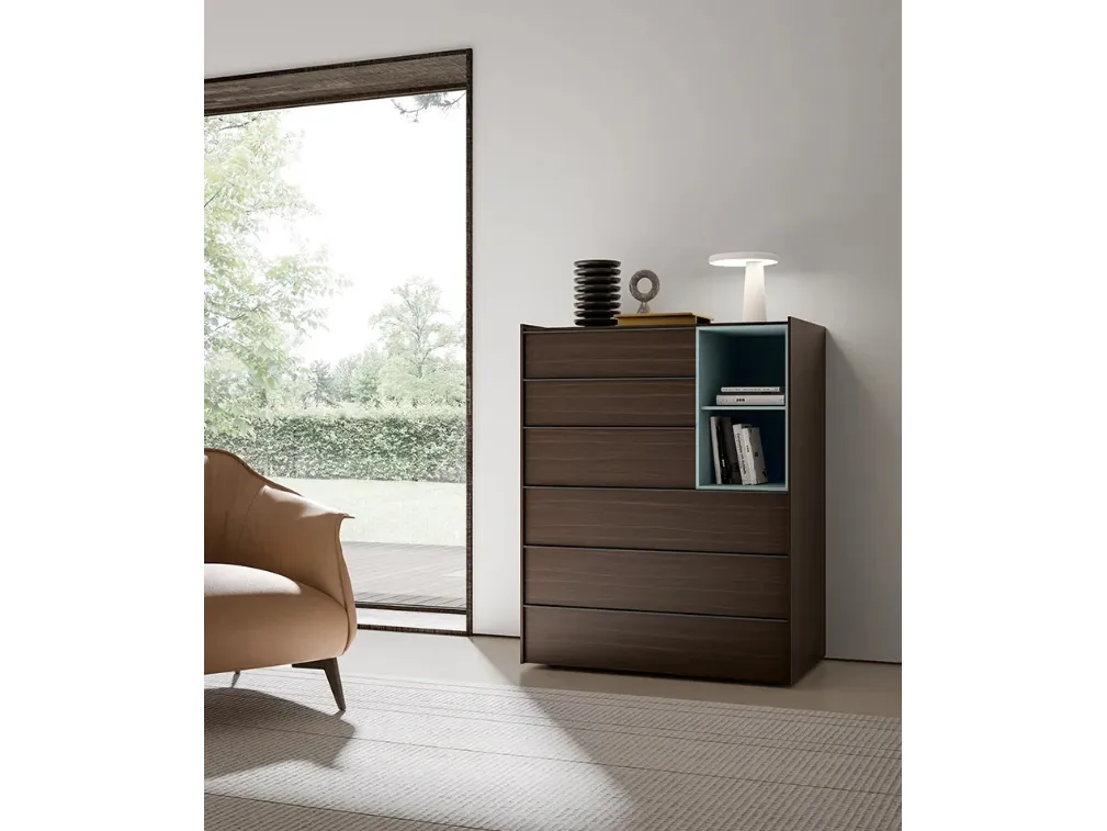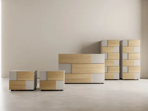 Commode Stream d'Adok: contactez-nous et découvrez-en plus sur nos solutions d'aménagement d'intérieur et aménagez votre chambre comme vous l'avez toujours rêvé. Optimisez vos espaces en choisissant des compositions d'objets assortis ou créez des associations esthétiquement agréables de styles et de couleurs en vous appuyant sur le catalogue de meubles et d'accessoires pour la chambre que nous proposons, comme le modèle en mélaminé montré en photo, également réalisable sur mesure. La chambre comprend également des tables de nuit : des meubles de rangement stratégiques qui offrent l'opportunité de ranger des objets et de disposer de surfaces pour divers usages.