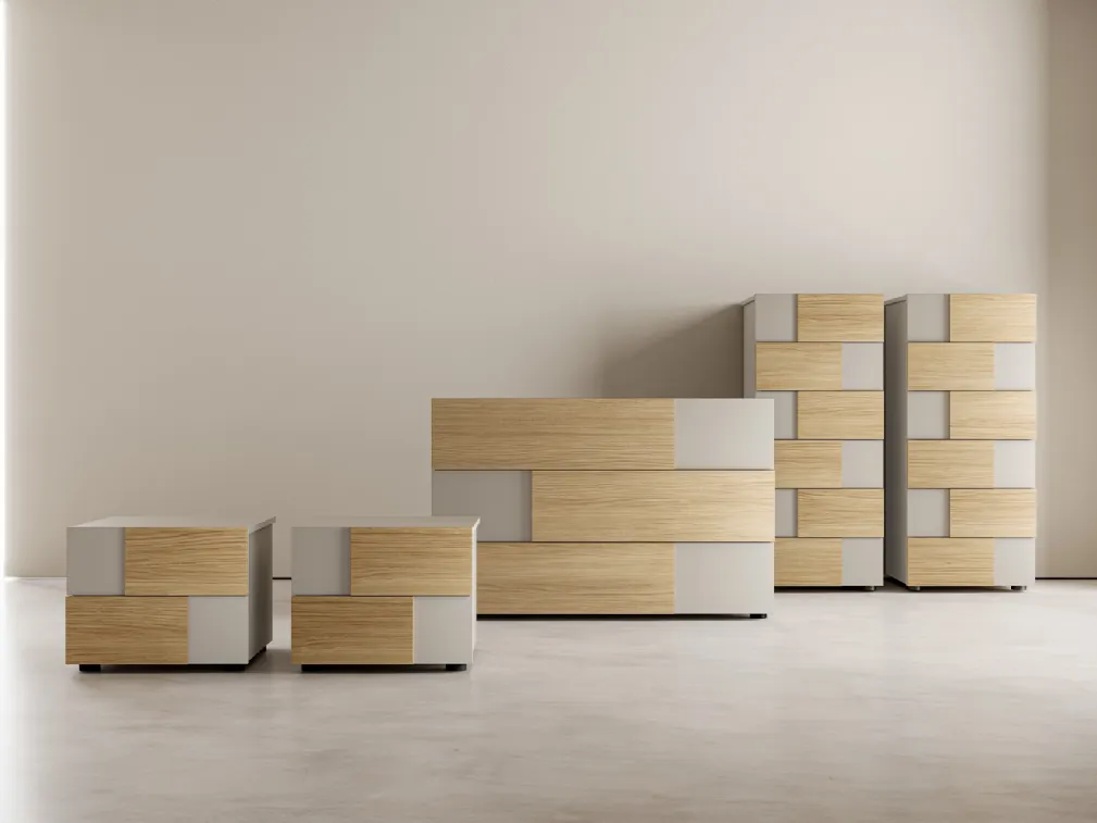 Tu veux aménager ta chambre avec les tables de nuit et les meubles à tiroirs de SantaLucia ? Voici le modèle Game Mix Gruppo Notte en mélaminé pour des espaces modernes.
