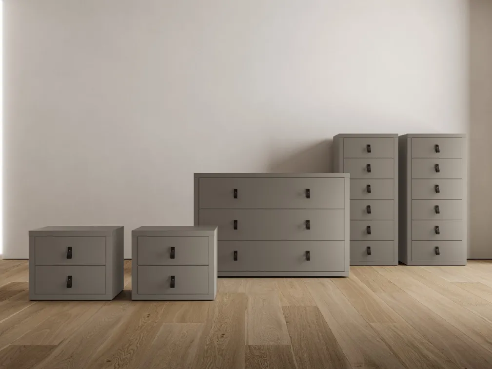 Veux-tu meubler ta chambre à coucher avec des tables de chevet et des commodes de SantaLucia? Voici le modèle Hot Gruppo Notte en mélaminé pour des espaces modern