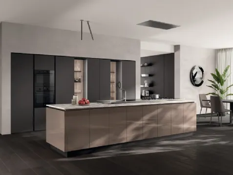 Cliquez et découvrez un univers de Cuisines Modernes avec îlot : la cuisine vitrée Lumina Pas Dosé et Rosso Jaipur Scavolini vous attend !
