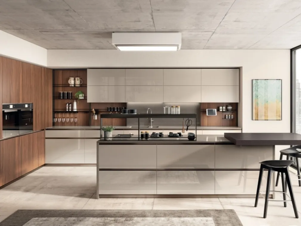Découvrez la grande modularité des Cuisines avec îlot Scavolini : la cuisine Boxi 02 en laqué brillant vous attend !