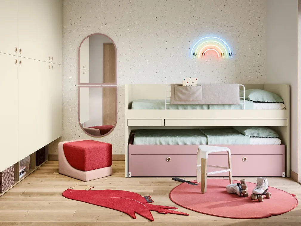 Nos enfants passent beaucoup de temps dans leurs chambres : faites-en des espaces adaptés pour faire leurs devoirs, s'amuser et dormir chaque jour. Les chambres de nos enfants sont le lieu où ils passeront leurs premières années à jouer et rêver, il est donc essentiel que l'espace soit bien organisé. Dans notre magasin, nous vous guiderons du choix des meubles de chambre à la conception de l'endroit où vos enfants grandiront, joueront et rêveront. Avec la chambre d'enfant gain de place et les lits surélevés de Nidi en mélaminé, vous vous assurez un mariage parfait entre ergonomie et sécurité, idéal pour la chambre de vos enfants.