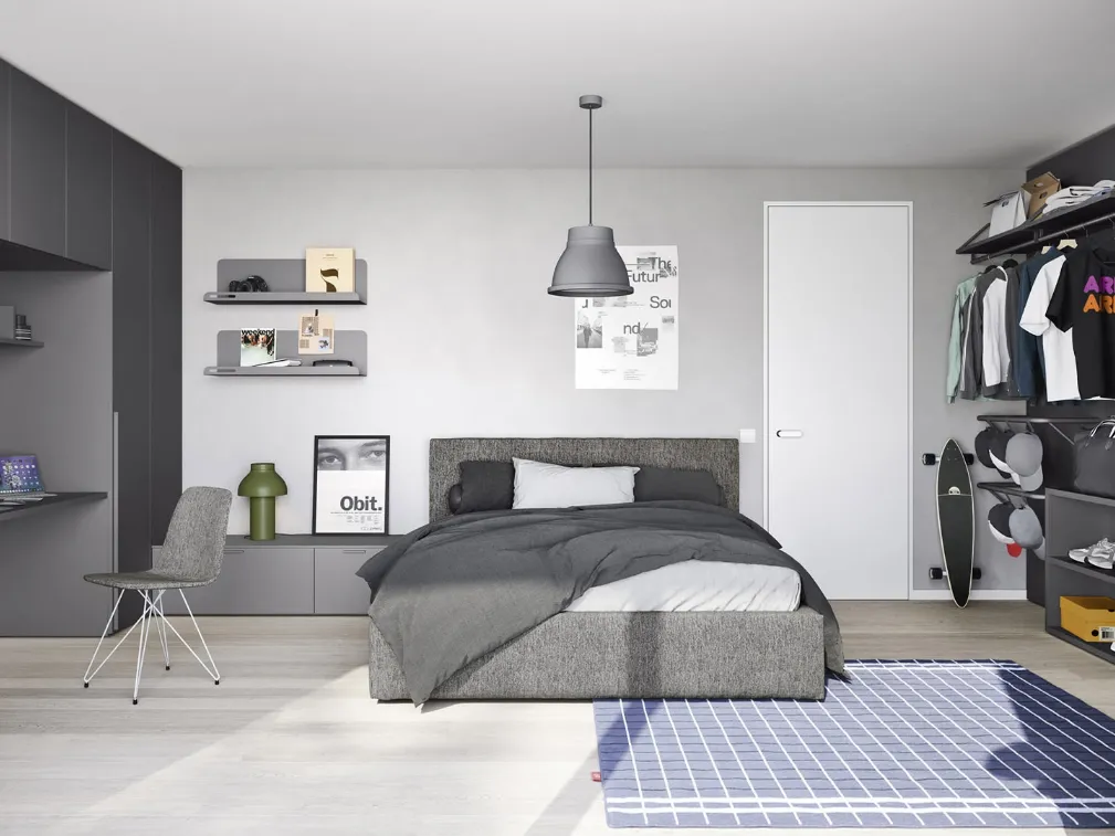 Décorez des chambres modernes avec les chambres d'enfants modulables Nidi ! Le modèle Wind en mélaminé est parfait pour