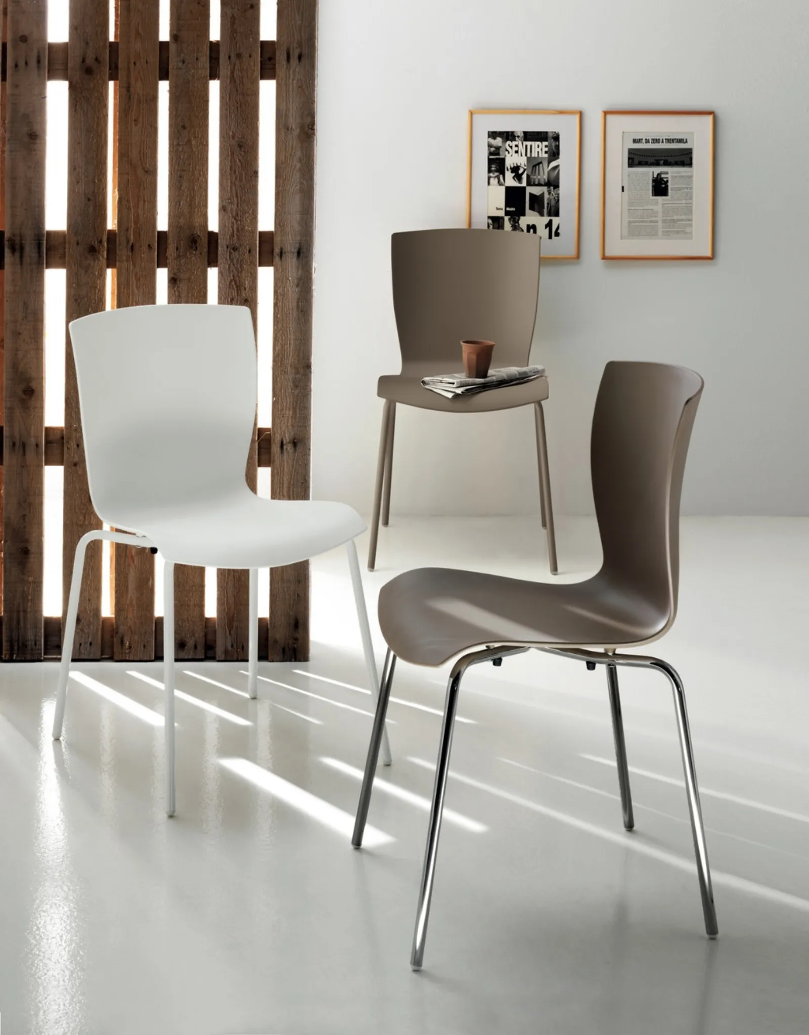 Nous vous proposons la chaise de cuisine Chatty pour des environnements modernes, parmi les chaises empilables les plus originales de Scavolini.