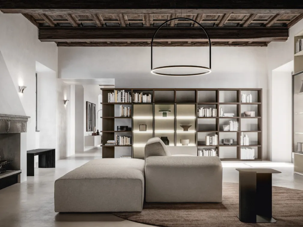 Matériaux de qualité et formes affirmées : découvrez la bibliothèque Location 01 de SantaLucia parmi les librairies modernes combinables les plus originales.