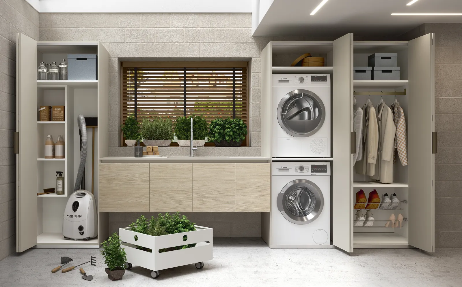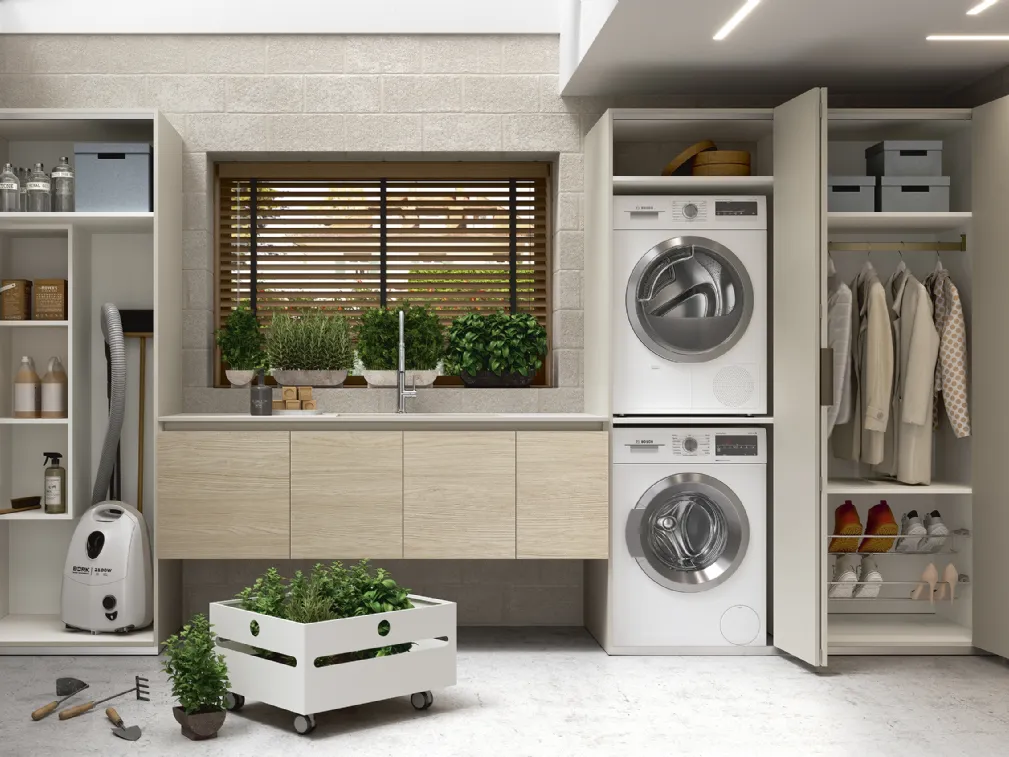 Meubles de salle de bain pour buanderie en mélaminé de la marque Rab Arredobagno : cliquez et découvrez le mobilier de salle de bain moderne Lavanderie 503