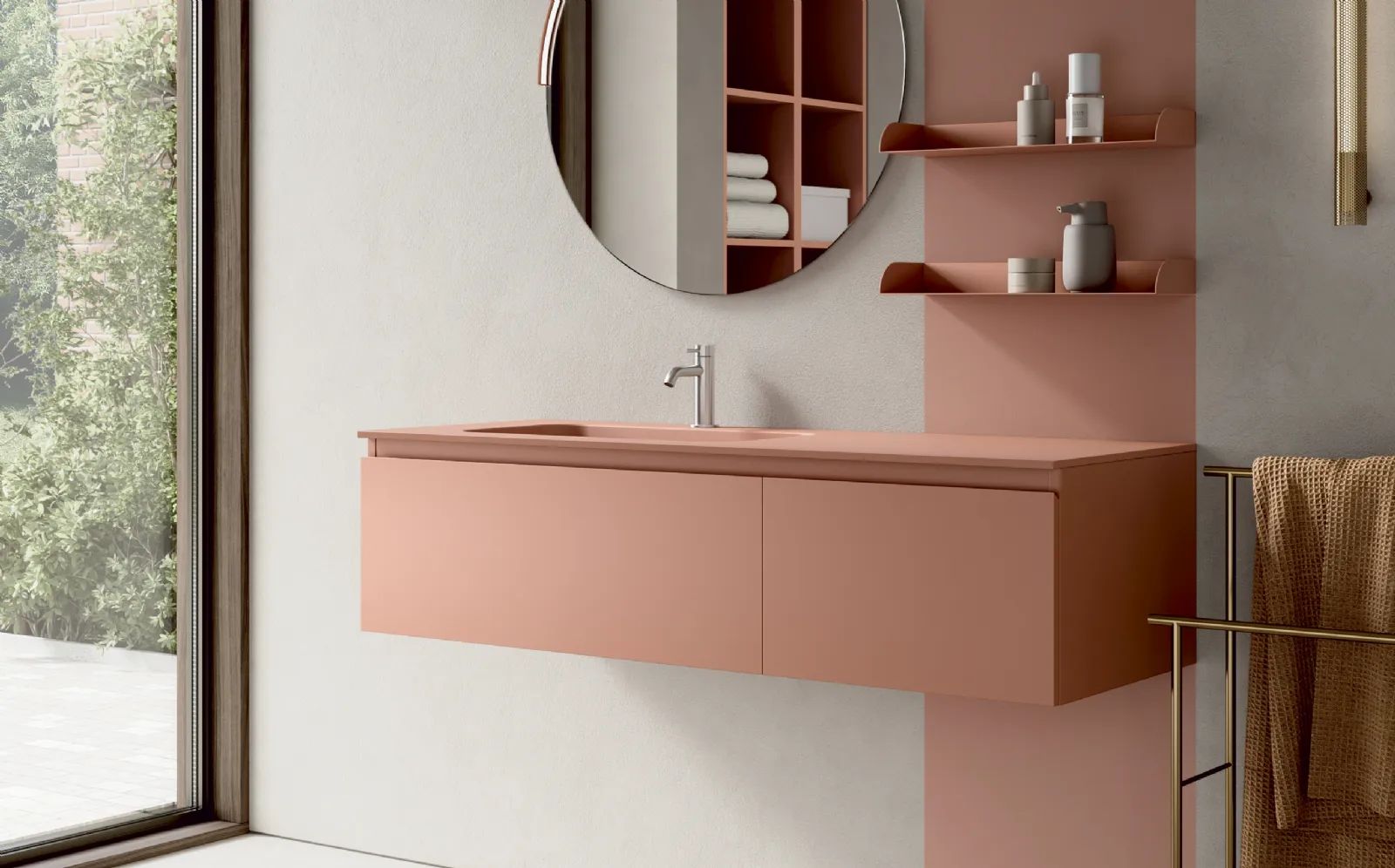Décorez la salle de bain de votre maison moderne à la perfection avec Thai 306, des meubles de salle de bain suspendus et des accessoires laqués mat de Rab Arred