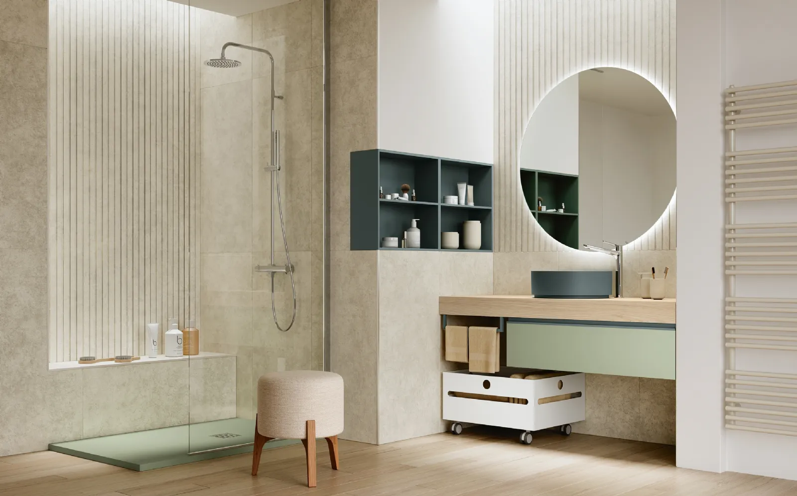 Meubles de salle de bain suspendus en laqué mat de la marque Rab Arredobagno: cliquez et découvrez le mobilier de salle de bain moderne Thai 404 pour la pièce du
