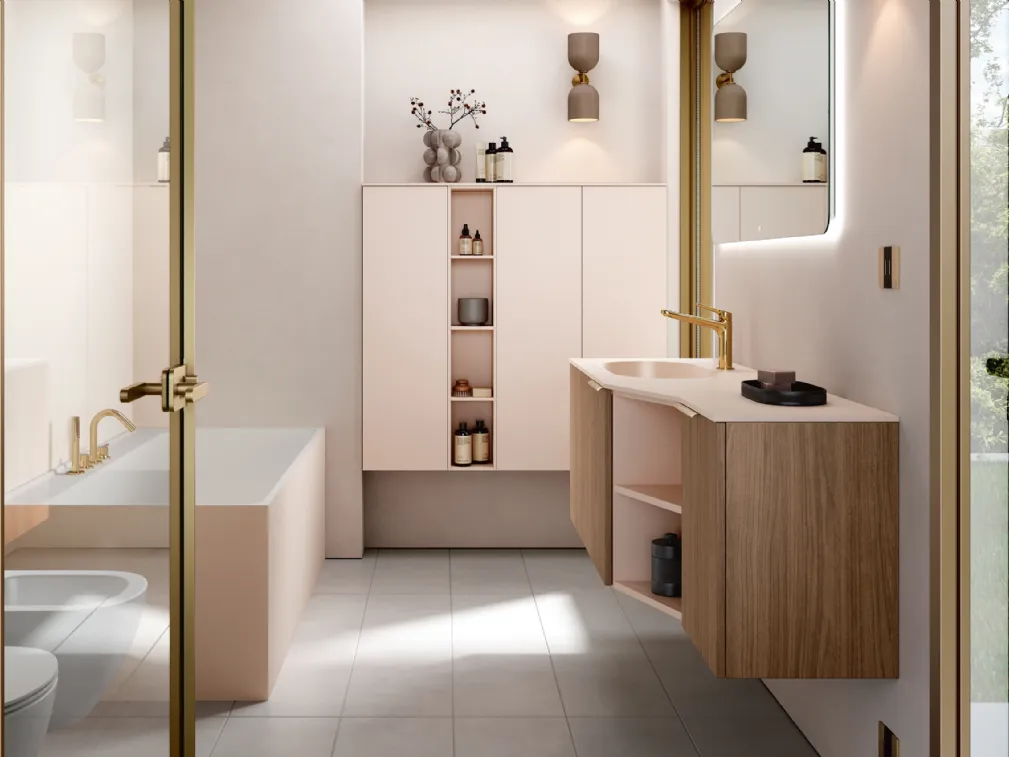 Décorez au mieux votre salle de bain moderne avec Thai 424, des meubles de salle de bain suspendus et des accessoires en mélaminé de Rab Ar