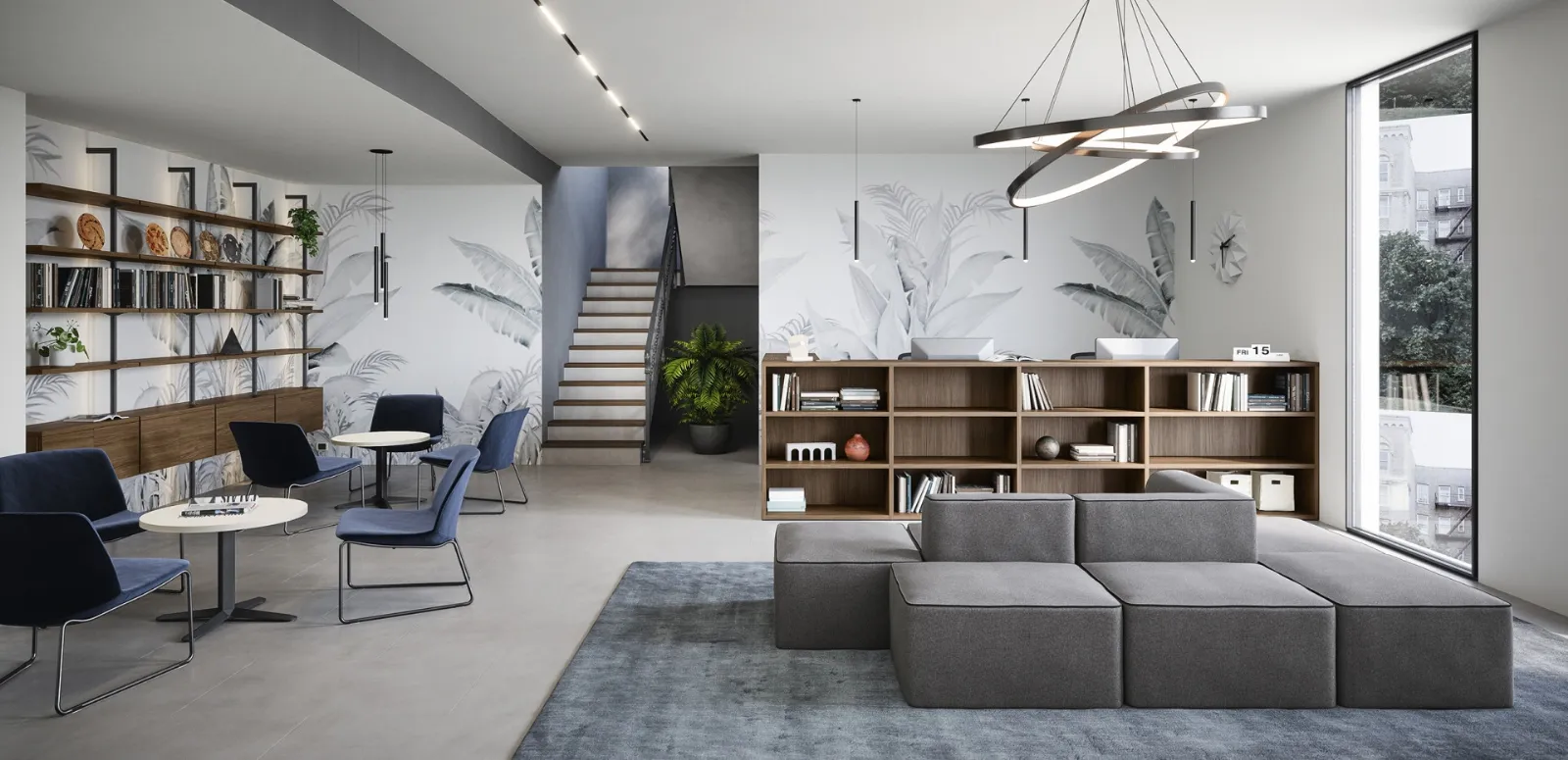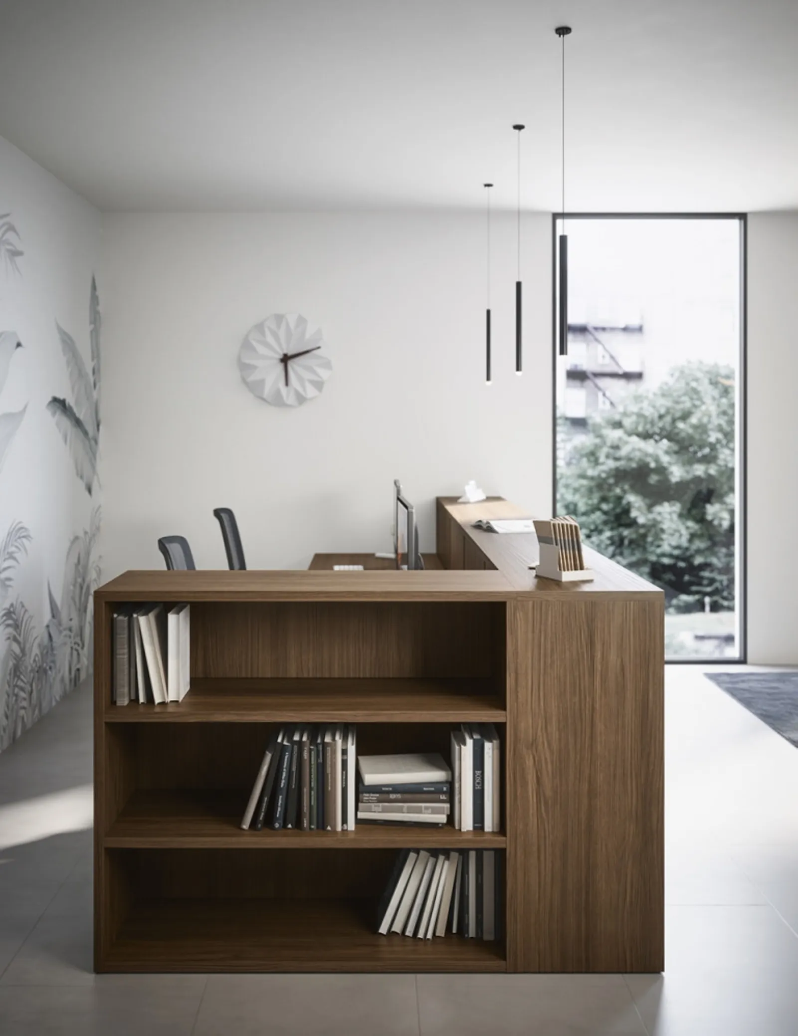 Si vous souhaitez compléter les espaces de travail, voici le modèle Bancone Reception 14B de Cinquanta3 parmi les différentes solutions de comptoirs d'accueil.
