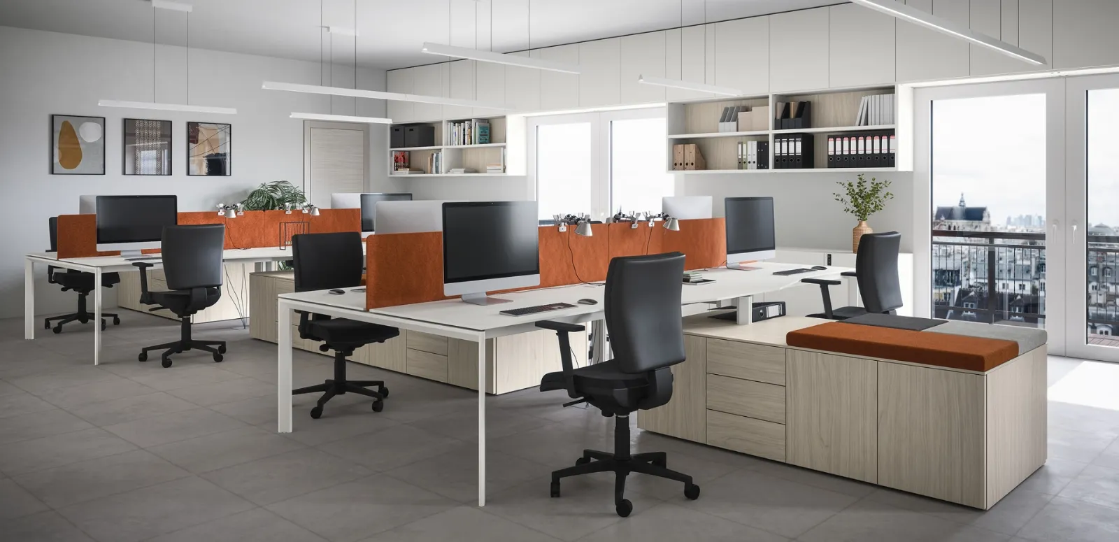 Vous souhaitez meubler vos espaces de travail ? Voici différentes propositions de bureaux opératifs en mélamine, comme le modèle 06B Operative Desk de Cinquanta3.